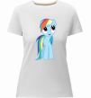 Жіноча преміум-футболка власного виробництва приталеного крою. Виготовлена з якісної тканини (95% бавовна, 5% еластан) — щільна, м'яка та приємна до тіла. Принт Блакитний єдиноріг можна розмістити на грудях, спині або рукаві.