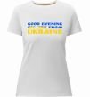 Жіноча преміум-футболка власного виробництва приталеного крою. Виготовлена з якісної тканини (95% бавовна, 5% еластан) — щільна, м'яка та приємна до тіла. Принт Good evening we are from ukraine прапор можна розмістити на грудях, спині або рукаві.