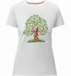 Жіноча преміум-футболка власного виробництва приталеного крою. Виготовлена з якісної тканини (95% бавовна, 5% еластан) — щільна, м'яка та приємна до тіла. Принт Green tree with flowers можна розмістити на грудях, спині або рукаві.