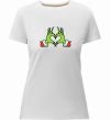 Жіноча преміум-футболка власного виробництва приталеного крою. Виготовлена з якісної тканини (95% бавовна, 5% еластан) — щільна, м'яка та приємна до тіла. Принт Грінч сердечко можна розмістити на грудях, спині або рукаві.