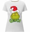 Жіноча преміум-футболка власного виробництва приталеного крою. Виготовлена з якісної тканини (95% бавовна, 5% еластан) — щільна, м'яка та приємна до тіла. Принт Грінч в шапці діда Мороза можна розмістити на грудях, спині або рукаві.