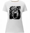 Жіноча преміум-футболка власного виробництва приталеного крою. Виготовлена з якісної тканини (95% бавовна, 5% еластан) — щільна, м'яка та приємна до тіла. Принт Nirvana band photo можна розмістити на грудях, спині або рукаві.
