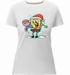 Жіноча преміум-футболка власного виробництва приталеного крою. Виготовлена з якісної тканини (95% бавовна, 5% еластан) — щільна, м'яка та приємна до тіла. Принт Губка Боб новорічний можна розмістити на грудях, спині або рукаві.