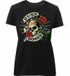 Жіноча преміум-футболка власного виробництва приталеного крою. Виготовлена з якісної тканини (95% бавовна, 5% еластан) — щільна, м'яка та приємна до тіла. Принт Guns N Roses skull можна розмістити на грудях, спині або рукаві.