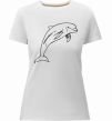 Жіноча преміум-футболка власного виробництва приталеного крою. Виготовлена з якісної тканини (95% бавовна, 5% еластан) — щільна, м'яка та приємна до тіла. Принт Happy dolphin можна розмістити на грудях, спині або рукаві.