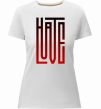 Жіноча преміум-футболка власного виробництва приталеного крою. Виготовлена з якісної тканини (95% бавовна, 5% еластан) — щільна, м'яка та приємна до тіла. Принт HateLove можна розмістити на грудях, спині або рукаві.
