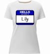 Жіноча преміум-футболка власного виробництва приталеного крою. Виготовлена з якісної тканини (95% бавовна, 5% еластан) — щільна, м'яка та приємна до тіла. Принт Hello my name is Lily можна розмістити на грудях, спині або рукаві.