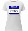 Жіноча преміум-футболка власного виробництва приталеного крою. Виготовлена з якісної тканини (95% бавовна, 5% еластан) — щільна, м'яка та приємна до тіла. Принт Hello my name is Svitlana можна розмістити на грудях, спині або рукаві.