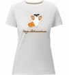 Жіноча преміум-футболка власного виробництва приталеного крою. Виготовлена з якісної тканини (95% бавовна, 5% еластан) — щільна, м'яка та приємна до тіла. Принт Ходи обійматись Коргі можна розмістити на грудях, спині або рукаві.