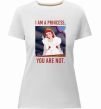 Жіноча преміум-футболка власного виробництва приталеного крою. Виготовлена з якісної тканини (95% бавовна, 5% еластан) — щільна, м'яка та приємна до тіла. Принт I am a princess, you are not можна розмістити на грудях, спині або рукаві.