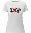 Жіноча преміум-футболка власного виробництва приталеного крою. Виготовлена з якісної тканини (95% бавовна, 5% еластан) — щільна, м'яка та приємна до тіла. Принт I LOVE FOOTBALL можна розмістити на грудях, спині або рукаві.