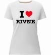 Жіноча преміум-футболка власного виробництва приталеного крою. Виготовлена з якісної тканини (95% бавовна, 5% еластан) — щільна, м'яка та приємна до тіла. Принт I love Rivne можна розмістити на грудях, спині або рукаві.