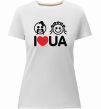 Жіноча преміум-футболка власного виробництва приталеного крою. Виготовлена з якісної тканини (95% бавовна, 5% еластан) — щільна, м'яка та приємна до тіла. Принт I love UA можна розмістити на грудях, спині або рукаві.