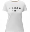 Жіноча преміум-футболка власного виробництва приталеного крою. Виготовлена з якісної тканини (95% бавовна, 5% еластан) — щільна, м'яка та приємна до тіла. Принт I need a br можна розмістити на грудях, спині або рукаві.