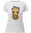 Жіноча преміум-футболка власного виробництва приталеного крою. Виготовлена з якісної тканини (95% бавовна, 5% еластан) — щільна, м'яка та приємна до тіла. Принт I'm Groot можна розмістити на грудях, спині або рукаві.