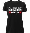 Жіноча преміум футболка I'm here but my heart is in Odesa
