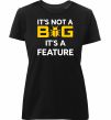 Жіноча преміум-футболка власного виробництва приталеного крою. Виготовлена з якісної тканини (95% бавовна, 5% еластан) — щільна, м'яка та приємна до тіла. Принт It`s not a bug it`s feature можна розмістити на грудях, спині або рукаві.