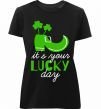Жіноча преміум-футболка власного виробництва приталеного крою. Виготовлена з якісної тканини (95% бавовна, 5% еластан) — щільна, м'яка та приємна до тіла. Принт It's your lucky day можна розмістити на грудях, спині або рукаві.