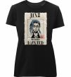 Жіноча преміум-футболка власного виробництва приталеного крою. Виготовлена з якісної тканини (95% бавовна, 5% еластан) — щільна, м'яка та приємна до тіла. Принт Jinx wanted можна розмістити на грудях, спині або рукаві.