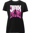 Жіноча преміум-футболка власного виробництва приталеного крою. Виготовлена з якісної тканини (95% бавовна, 5% еластан) — щільна, м'яка та приємна до тіла. Принт Jinx можна розмістити на грудях, спині або рукаві.