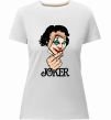 Жіноча преміум-футболка власного виробництва приталеного крою. Виготовлена з якісної тканини (95% бавовна, 5% еластан) — щільна, м'яка та приємна до тіла. Принт Joker card можна розмістити на грудях, спині або рукаві.