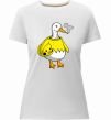 Жіноча преміум-футболка власного виробництва приталеного крою. Виготовлена з якісної тканини (95% бавовна, 5% еластан) — щільна, м'яка та приємна до тіла. Принт Качка аніматор можна розмістити на грудях, спині або рукаві.