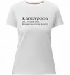 Жіноча преміум-футболка власного виробництва приталеного крою. Виготовлена з якісної тканини (95% бавовна, 5% еластан) — щільна, м'яка та приємна до тіла. Принт Катястрофа можна розмістити на грудях, спині або рукаві.