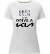 Жіноча преміум-футболка власного виробництва приталеного крою. Виготовлена з якісної тканини (95% бавовна, 5% еластан) — щільна, м'яка та приємна до тіла. Принт Keep calm and drive KIA можна розмістити на грудях, спині або рукаві.