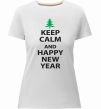 Жіноча преміум-футболка власного виробництва приталеного крою. Виготовлена з якісної тканини (95% бавовна, 5% еластан) — щільна, м'яка та приємна до тіла. Принт Keep calm and happy new year можна розмістити на грудях, спині або рукаві.