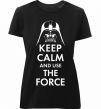 Жіноча преміум-футболка власного виробництва приталеного крою. Виготовлена з якісної тканини (95% бавовна, 5% еластан) — щільна, м'яка та приємна до тіла. Принт Keep calm and use the force можна розмістити на грудях, спині або рукаві.