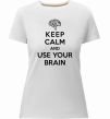 Жіноча преміум-футболка власного виробництва приталеного крою. Виготовлена з якісної тканини (95% бавовна, 5% еластан) — щільна, м'яка та приємна до тіла. Принт Keep Calm use your brain можна розмістити на грудях, спині або рукаві.