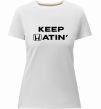Жіноча преміум-футболка власного виробництва приталеного крою. Виготовлена з якісної тканини (95% бавовна, 5% еластан) — щільна, м'яка та приємна до тіла. Принт Keep Hatin` можна розмістити на грудях, спині або рукаві.