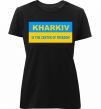 Жіноча преміум-футболка власного виробництва приталеного крою. Виготовлена з якісної тканини (95% бавовна, 5% еластан) — щільна, м'яка та приємна до тіла. Принт Kharkiv center of freedom можна розмістити на грудях, спині або рукаві.