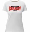 Жіноча преміум-футболка власного виробництва приталеного крою. Виготовлена з якісної тканини (95% бавовна, 5% еластан) — щільна, м'яка та приємна до тіла. Принт Kharkiv Ukraine можна розмістити на грудях, спині або рукаві.