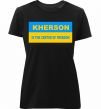 Жіноча преміум-футболка власного виробництва приталеного крою. Виготовлена з якісної тканини (95% бавовна, 5% еластан) — щільна, м'яка та приємна до тіла. Принт Kherson center of freedom можна розмістити на грудях, спині або рукаві.