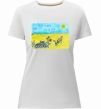 Жіноча преміум-футболка власного виробництва приталеного крою. Виготовлена з якісної тканини (95% бавовна, 5% еластан) — щільна, м'яка та приємна до тіла. Принт Ми хочемо миру можна розмістити на грудях, спині або рукаві.