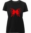 Жіноча преміум-футболка власного виробництва приталеного крою. Виготовлена з якісної тканини (95% бавовна, 5% еластан) — щільна, м'яка та приємна до тіла. Принт Червоний метелик можна розмістити на грудях, спині або рукаві.