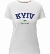 Жіноча преміум-футболка власного виробництва приталеного крою. Виготовлена з якісної тканини (95% бавовна, 5% еластан) — щільна, м'яка та приємна до тіла. Принт Kyiv Ukraine можна розмістити на грудях, спині або рукаві.