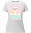 Жіноча преміум-футболка власного виробництва приталеного крою. Виготовлена з якісної тканини (95% бавовна, 5% еластан) — щільна, м'яка та приємна до тіла. Принт Лама у ванній можна розмістити на грудях, спині або рукаві.