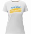 Жіноча преміум-футболка власного виробництва приталеного крою. Виготовлена з якісної тканини (95% бавовна, 5% еластан) — щільна, м'яка та приємна до тіла. Принт Луганськ прапор можна розмістити на грудях, спині або рукаві.
