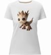 Жіноча преміум-футболка власного виробництва приталеного крою. Виготовлена з якісної тканини (95% бавовна, 5% еластан) — щільна, м'яка та приємна до тіла. Принт Малюк Грут можна розмістити на грудях, спині або рукаві.