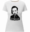 Жіноча преміум-футболка власного виробництва приталеного крою. Виготовлена з якісної тканини (95% бавовна, 5% еластан) — щільна, м'яка та приємна до тіла. Принт Marilyn Manson можна розмістити на грудях, спині або рукаві.