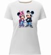 Жіноча преміум-футболка власного виробництва приталеного крою. Виготовлена з якісної тканини (95% бавовна, 5% еластан) — щільна, м'яка та приємна до тіла. Принт Mickie and Minnie Mouse можна розмістити на грудях, спині або рукаві.