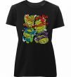 Жіноча преміум-футболка власного виробництва приталеного крою. Виготовлена з якісної тканини (95% бавовна, 5% еластан) — щільна, м'яка та приємна до тіла. Принт Mikey Raph Leo Donnie можна розмістити на грудях, спині або рукаві.