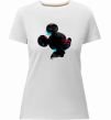 Жіноча преміум-футболка власного виробництва приталеного крою. Виготовлена з якісної тканини (95% бавовна, 5% еластан) — щільна, м'яка та приємна до тіла. Принт Міккі Маус силует фарби можна розмістити на грудях, спині або рукаві.