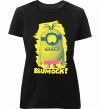 Жіноча преміум-футболка власного виробництва приталеного крою. Виготовлена з якісної тканини (95% бавовна, 5% еластан) — щільна, м'яка та приємна до тіла. Принт Minion blumock можна розмістити на грудях, спині або рукаві.