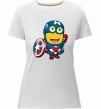 Жіноча преміум-футболка власного виробництва приталеного крою. Виготовлена з якісної тканини (95% бавовна, 5% еластан) — щільна, м'яка та приємна до тіла. Принт Міньйон Капітан можна розмістити на грудях, спині або рукаві.