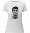 Жіноча преміум-футболка власного виробництва приталеного крою. Виготовлена з якісної тканини (95% бавовна, 5% еластан) — щільна, м'яка та приємна до тіла. Принт Молодий Ronaldo можна розмістити на грудях, спині або рукаві.