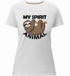 Жіноча преміум-футболка власного виробництва приталеного крою. Виготовлена з якісної тканини (95% бавовна, 5% еластан) — щільна, м'яка та приємна до тіла. Принт My spirit animal sloth можна розмістити на грудях, спині або рукаві.