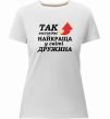 Жіноча преміум-футболка власного виробництва приталеного крою. Виготовлена з якісної тканини (95% бавовна, 5% еластан) — щільна, м'яка та приємна до тіла. Принт Найкраща дружина у світі можна розмістити на грудях, спині або рукаві.